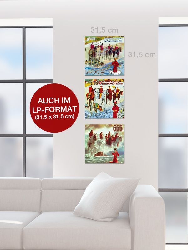 Vater Unser Ein kritischer Blick auf die Menschheit und deren bigotte Geißel. 3-teiliges Kirchenfenster im Direktdruck auf Aluminiumdibond-Platte gold gebürstet – Gesamtformat 90(H)x150cm(B) #art #artsy #artwork #graphicdesign #kunstliebhaber #kunstsammler #richardwagner #galerie #vernisage #gemälde #bildreihe #vaterunser #kirchenfenster 6 Wo.Button